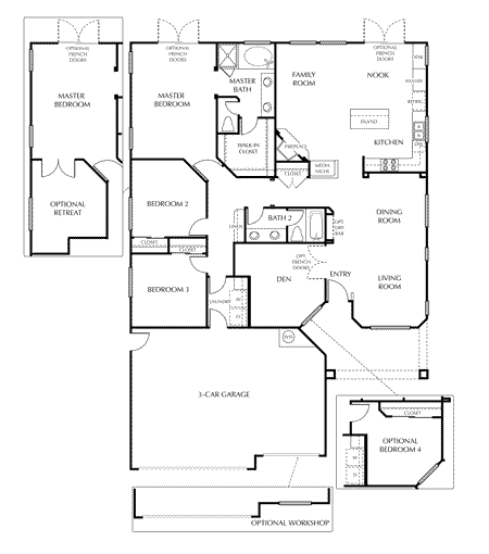 Floorplans Level 1 Sq. Feet1,918Bedrooms3 Bedrooms + denBaths2 BathsGarage3-CarPriceFrom the high $300,000sOptionsBedroom 4, Workshop, Retreat For more information call: Contact Us Via Email